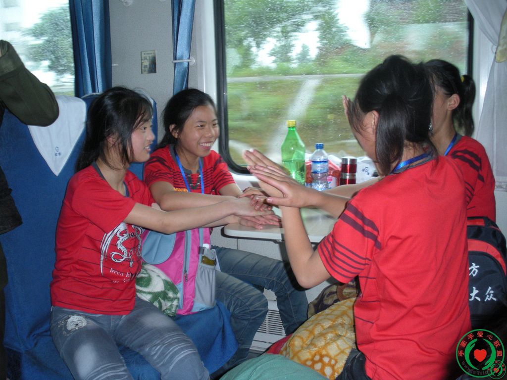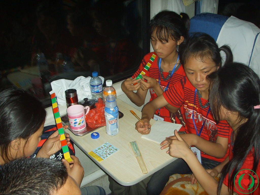 在火车上有的写日记、有的玩玩具