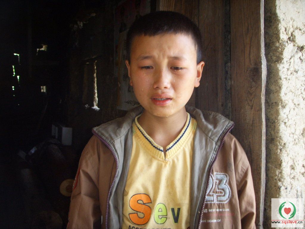 胡定良,13岁,母亲离家出走,父亲打工失踪,几年来杳无音信。现由爷爷照顾,晚上一个人住。