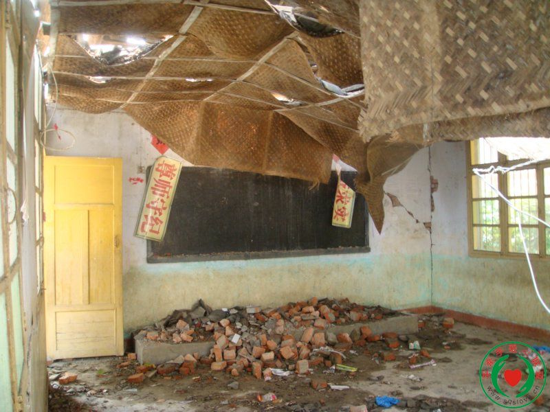 512地震后孩子们只能临时在临时油布棚下面上课。后来由村里自行搭建的临时房子,这里成了孩子们的临时课堂。刚刚搭建好时,因为严重缺乏课桌椅还有黑板,孩子们只能自己带凳子坐在外面上课。