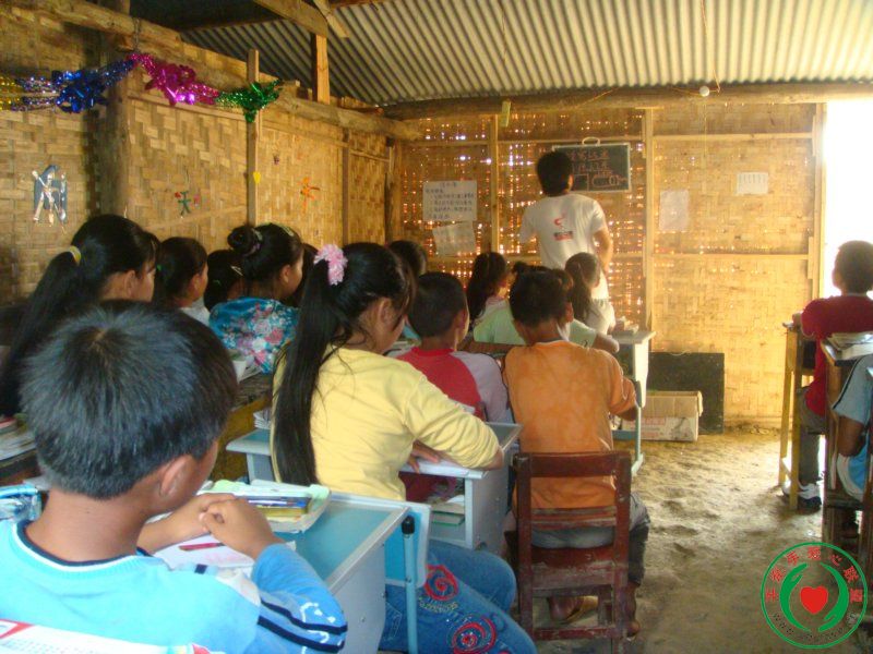 志愿者老师们没有讲桌,只有用一块小小的黑板,还有手上的粉笔头来表达他们的善良和爱