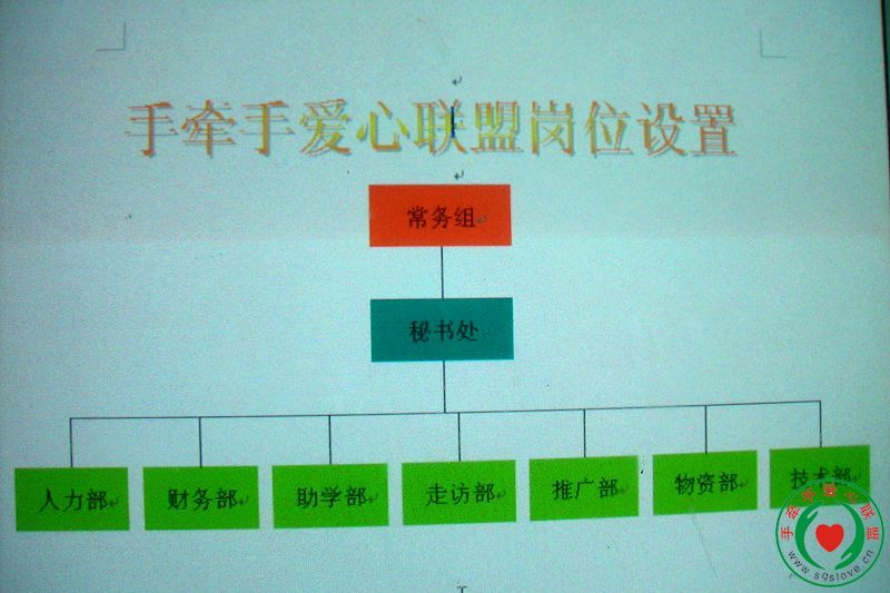 工作职责:重大事项的决策;手牵手发展方向的规划;助学计划的制定;助学项目的的建立等.是手牵手的最高执行机构