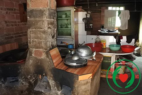 胡定芳家厨房,1间屋2个灶台,因她家房屋少,与其伯伯家共用厨房。