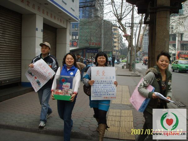 为了萍萍能尽快进行治疗,我们得努力为其寻求热心人帮助,于是在成都华西附二院门口,一场民间组织自发开展的募捐活动开展了。
