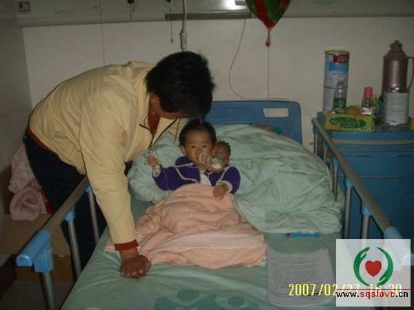 据新闻介绍,才1岁的女婴王萍被父母遗弃在成都市人民南路华西附二院,并得了先天性心脏病,通俗的说就是心脏多长了一个洞,导致本来该留到身体循环的血都跑到肺部去了,因此直接导致营养不良,一岁才只有12斤。由心脏病引发了肺炎,估计父母没能力医就跑了。娃娃病房在4楼22床,目前主要是周围的病友在照顾。