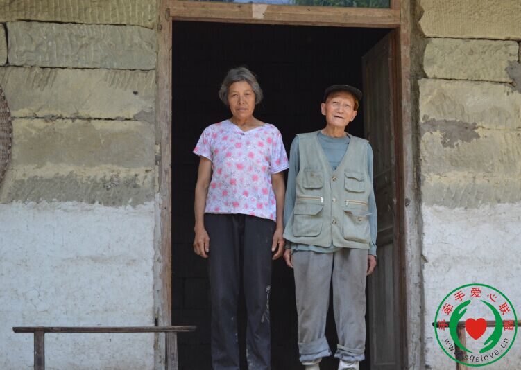 志愿者李云飞老师在走访,右为胡定芳的父亲(双眼失明)。