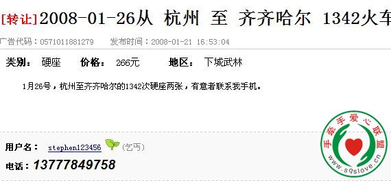 » 【宣传】2008年春节车票交易爱心平台
