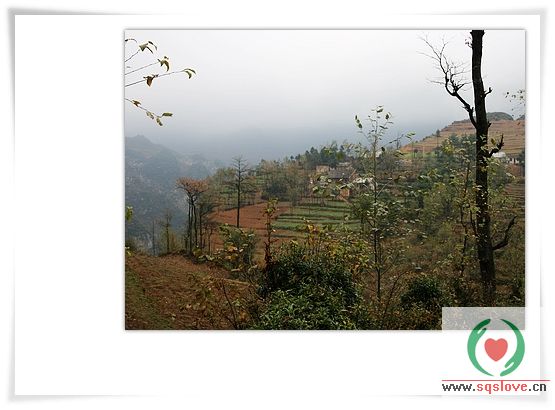 图片的中间,大山的深处的一所小学校