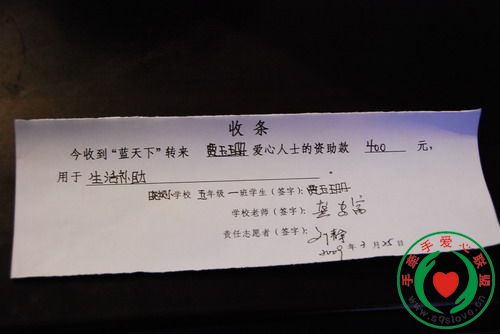 感谢手牵手所有爱心人士对灾区学生的无私援助,凡是留有地址的资助者会收到所资助学生的信和收据,请注意查收,谢谢!