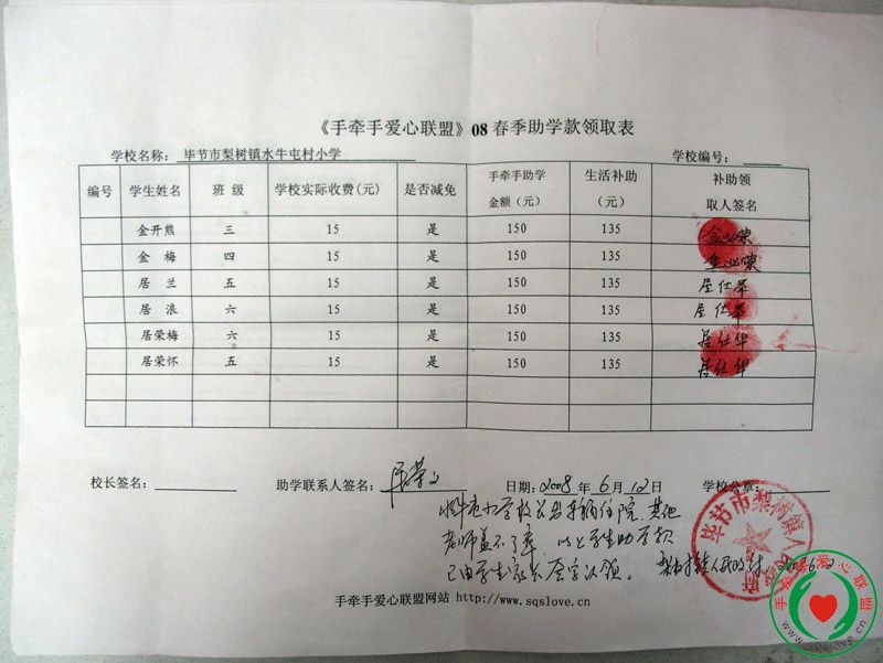 08年春助学款发放反馈汇总