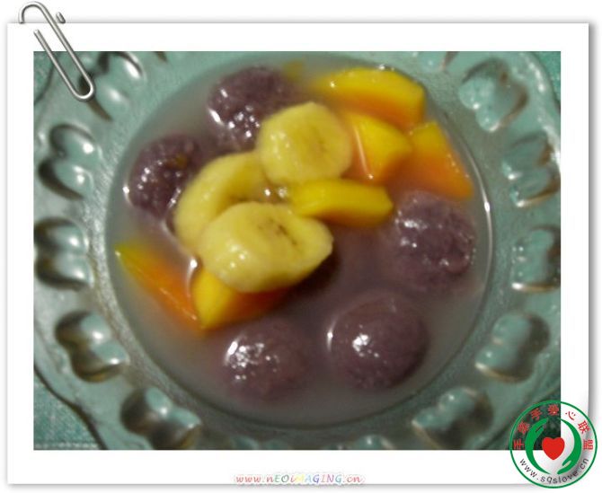 元宵前一晚做的水果汤圆,(木瓜,香蕉,汤圆)