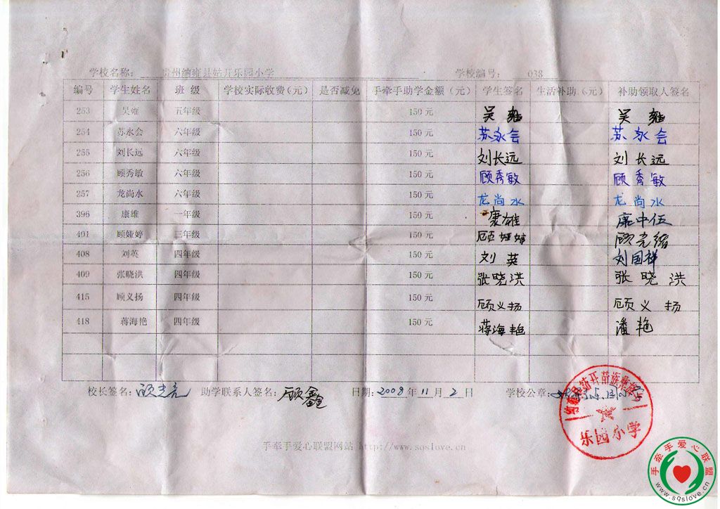 » 2008秋贵州助学款领款反馈