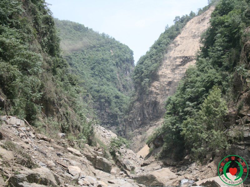 照片时是站在水里的一块小石头上的,我刚拍完相片就发生了一次很小的余震,感觉到整个山谷晃了一下,许愿树和村长都替我紧张的不得了,其实他们就在离我不远的地方,他们也不安全。我知道我已不能再向前走了。这个地方的山那边就是青川县的六合乡,那个很多人都在往外逃的地方。