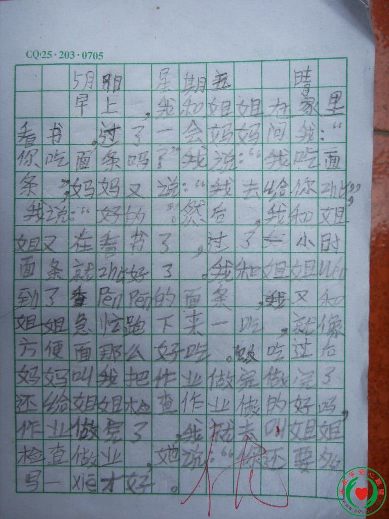 聂方学 女 13岁 就读于茨竹小学六年级(2)班。