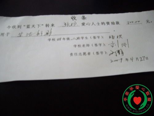 感谢手牵手所有爱心人士对灾区学生的无私援助,凡是留有地址的资助者会收到所资助学生的信和收据,请注意查收,谢谢!