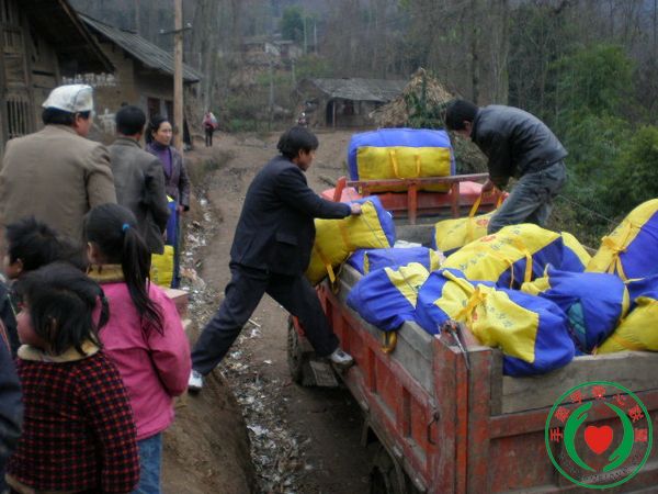 镇广灵村的救灾物资)。