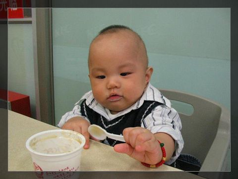 爸爸妈妈吃大汉堡~偶吃土豆泥~很明显不公平!!!