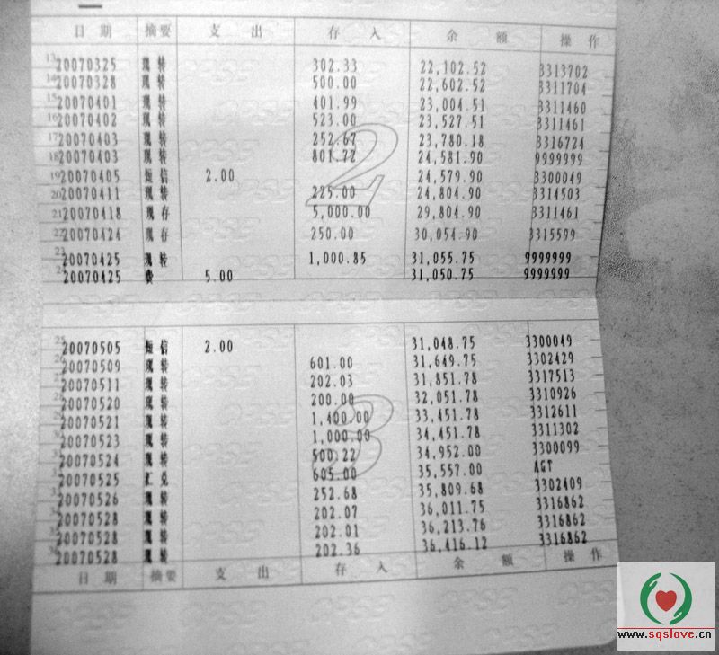 邮政局公开帐号收支明细(截止2007年5月30日)