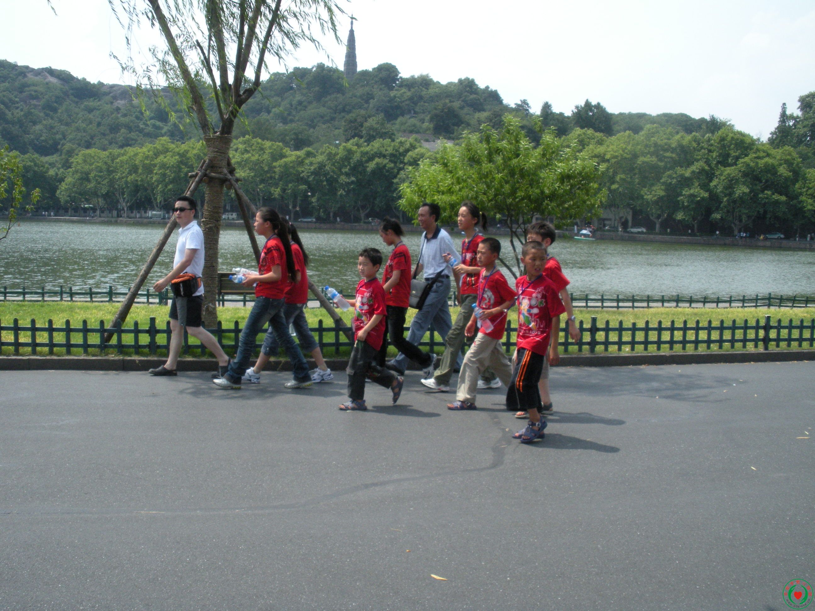 孩子们在正午的带领下游西湖