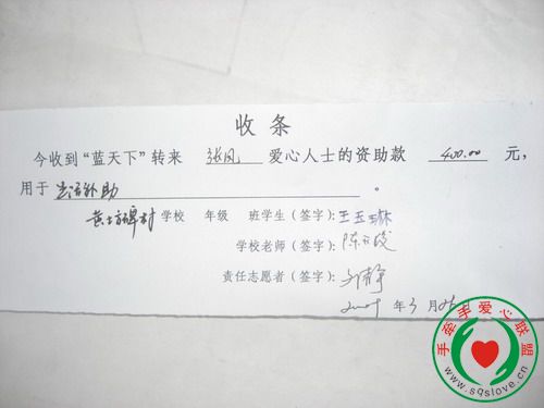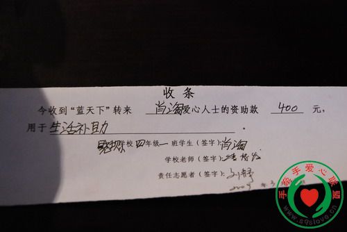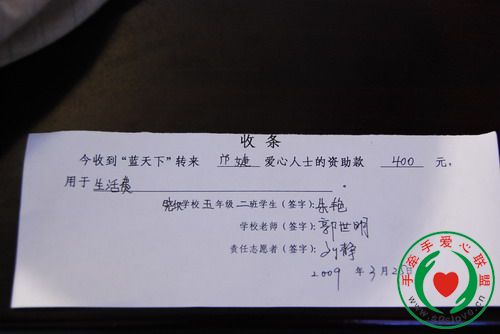 感谢手牵手所有爱心人士对灾区学生的无私援助,凡是留有地址的资助者会收到所资助学生的信和收据,请注意查收,谢谢!