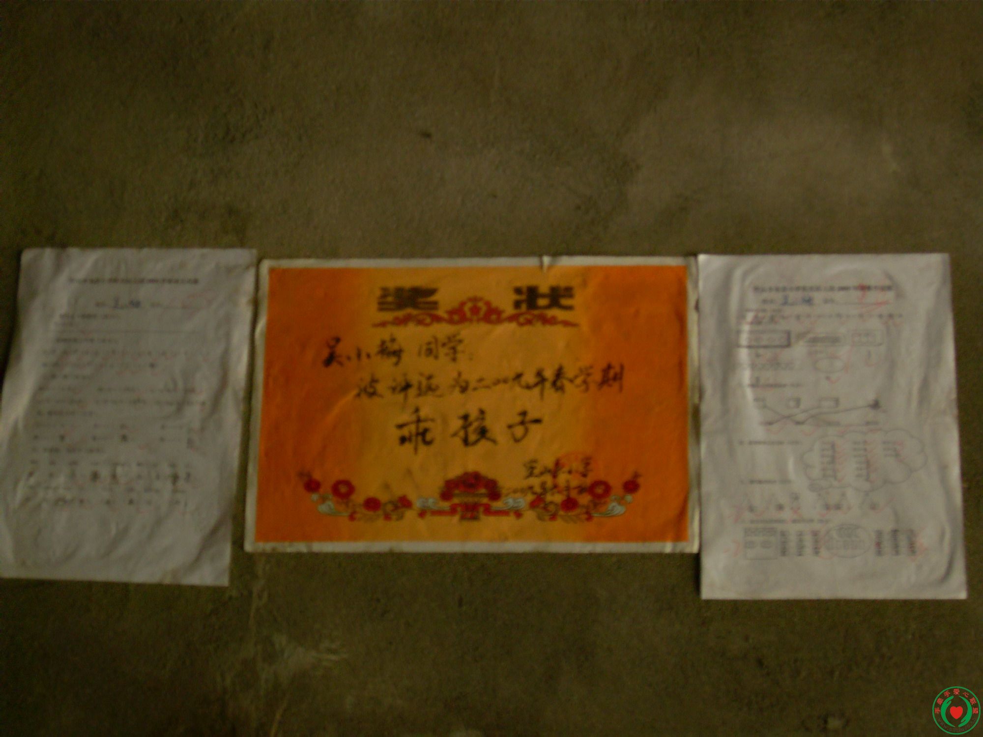 只是照片2中两小姐妹获得的奖状和考100分是试卷。