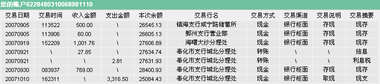 截止2007年4月20日,农行卡号明细