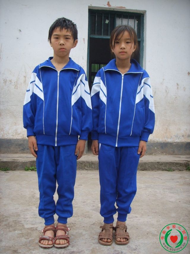 黄荣和黄艳姐弟俩第一次穿上了校服