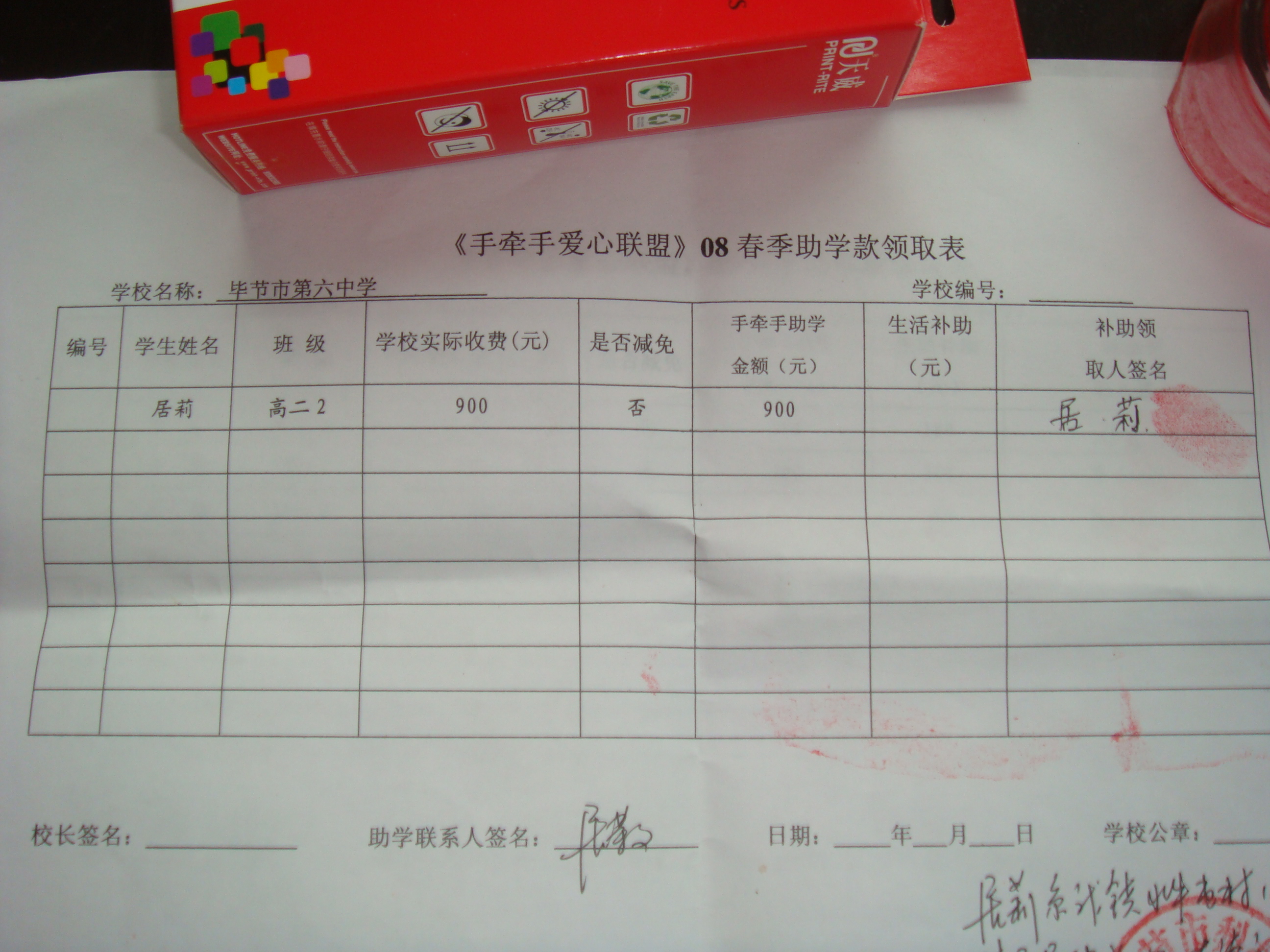 居莉居梦母亲领助学款