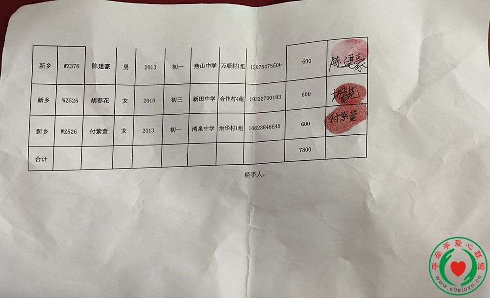 1名,共计7800元。徐梅向孩子们表达了手牵手叔叔阿姨的关心爱护及殷切期盼,勉励他们珍惜时光、认真学习,以优异成绩回报远方的爱心支持。孩子们收到助学款后都充满感激和温暖,纷纷委托志愿者向爱心叔叔阿姨表达谢意。