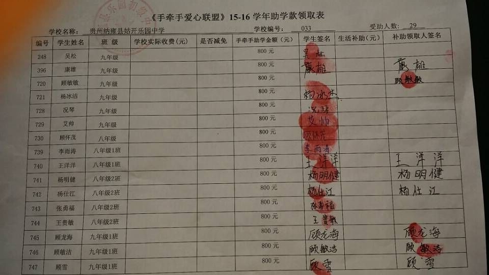 2015年-2016年学年助学款发放汇款情况汇总