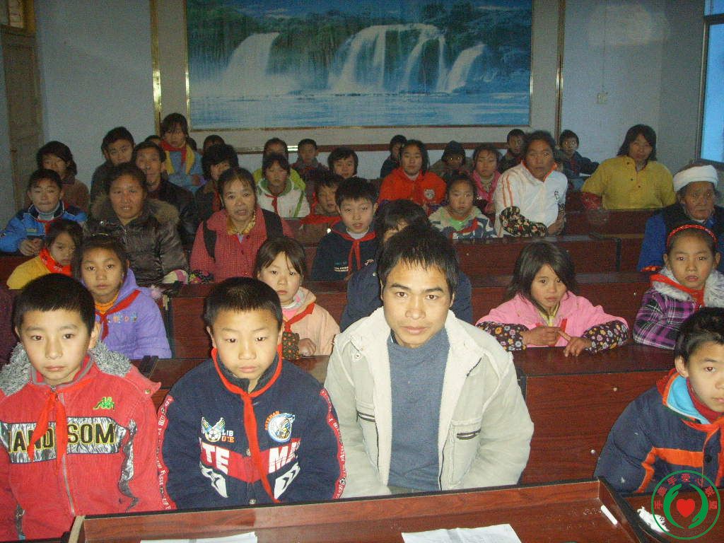 孩子和家长们在认真听取有关情况和希望