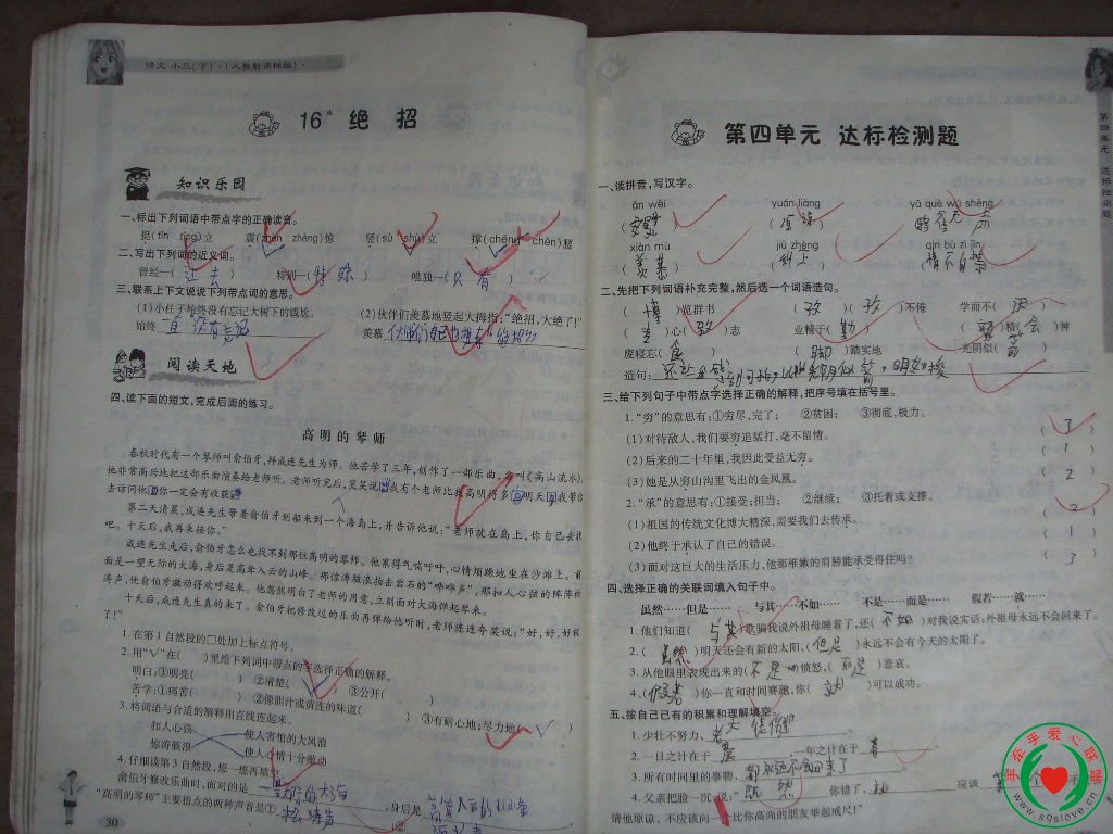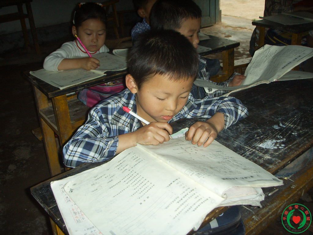 很聪明,用书包将裤子烂了的地方挡着