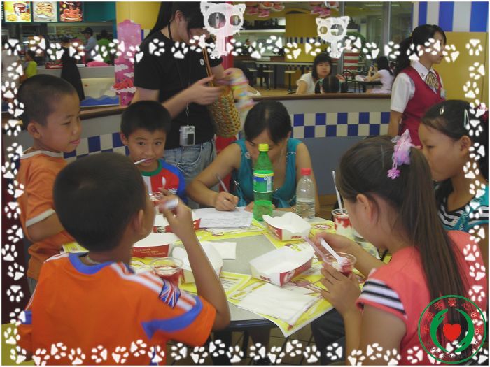 感谢热心市民爱心女士邀请孩子们吃了一餐肯德基, 感谢肯德基餐厅为孩子们送上一份份礼物,让孩子们也享受到了跟别的孩子一样的快乐时光.