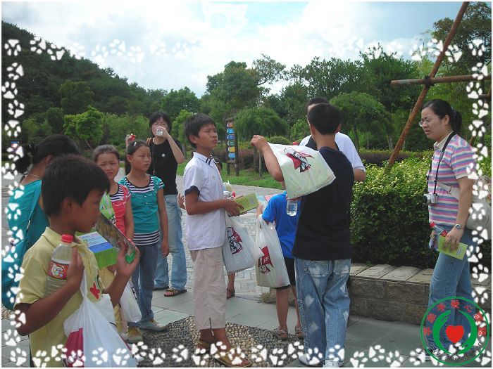 下午2点,孩子们跟志愿者到达了宁波雅戈儿动物园,天气比较酷热