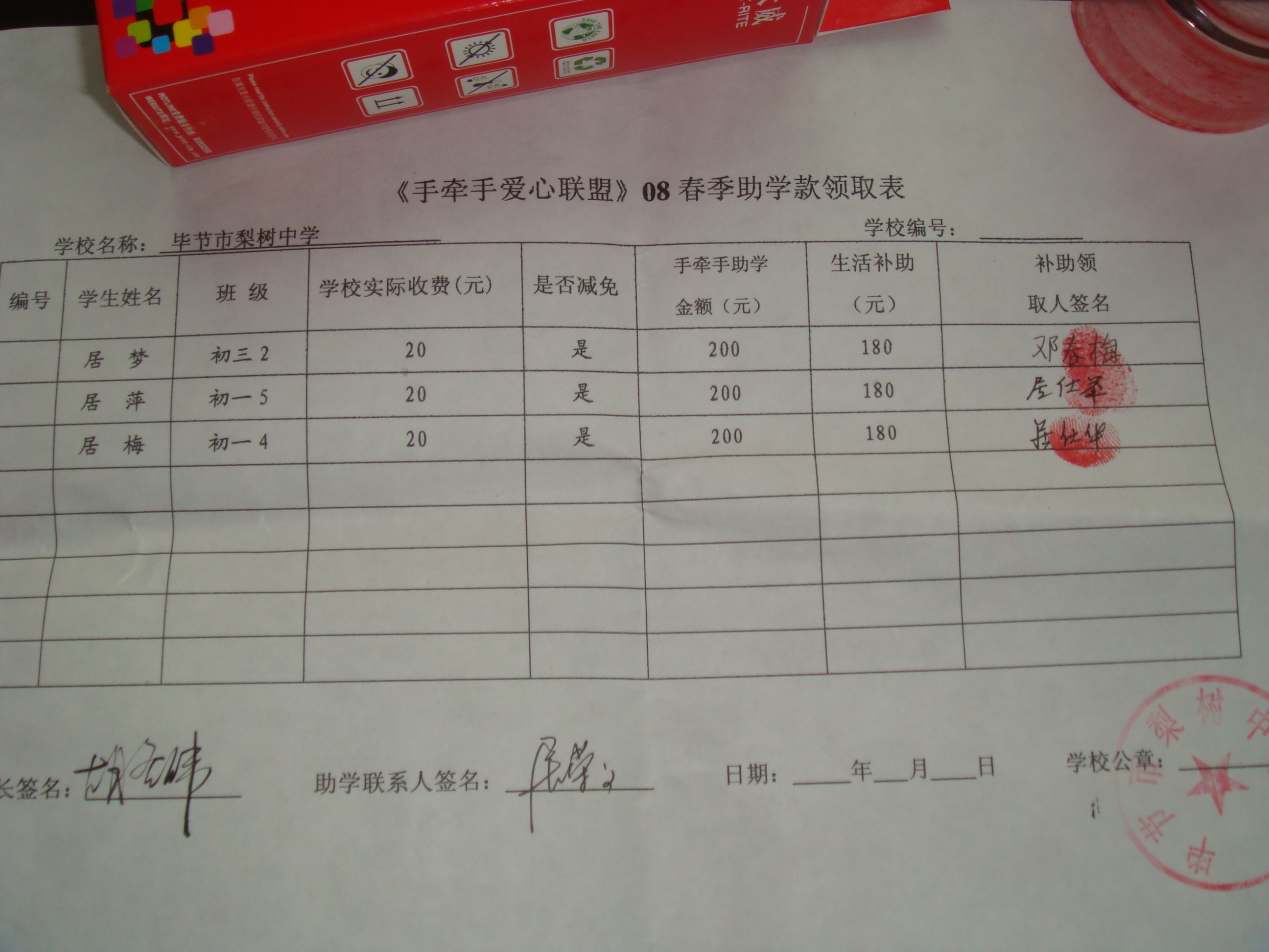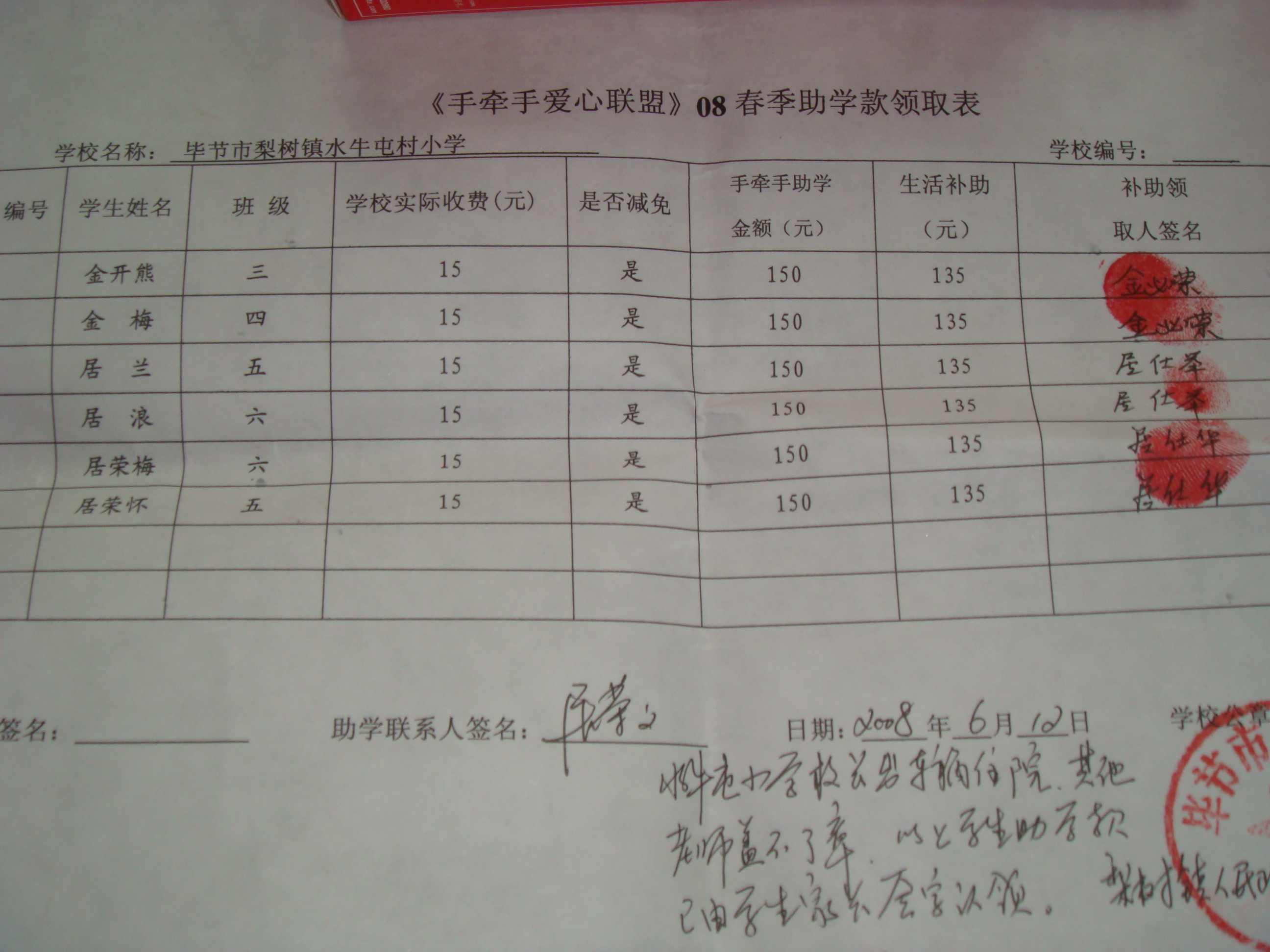 居莉居梦母亲领助学款
