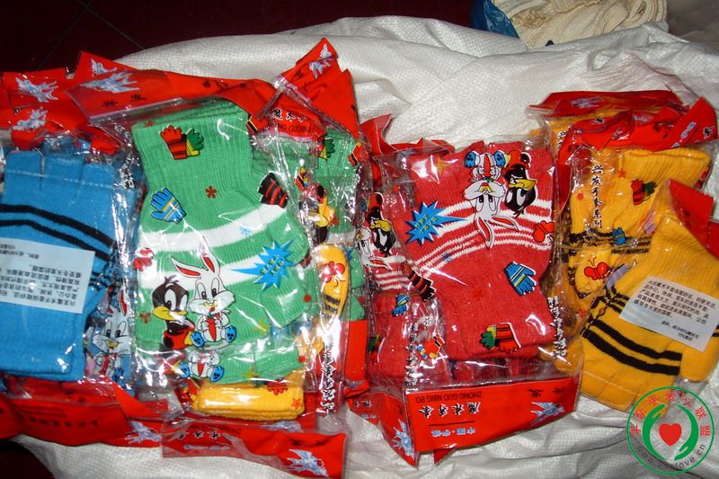 今天我们的资助人徐MM,(灾区学生严红的资助人,可惜今天我没有见到她面,估计是比我小)发动周围朋友一起捐赠了四大包衣服,300双新手套以及420元运输费用。真是太感谢这些一个个素未谋面的爱心人士啊!