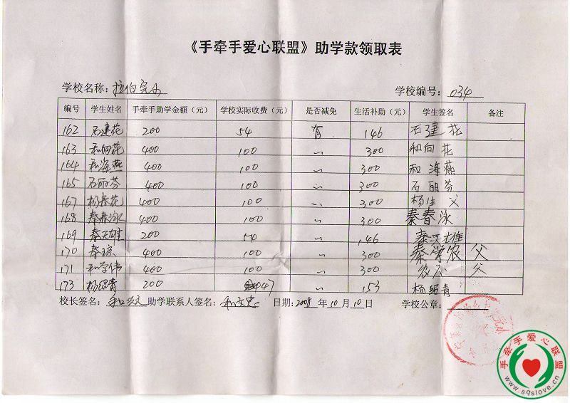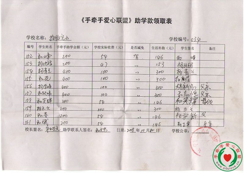 08年秋云南助学区领款反馈