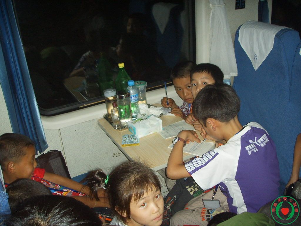 在火车上有的写日记、有的玩玩具