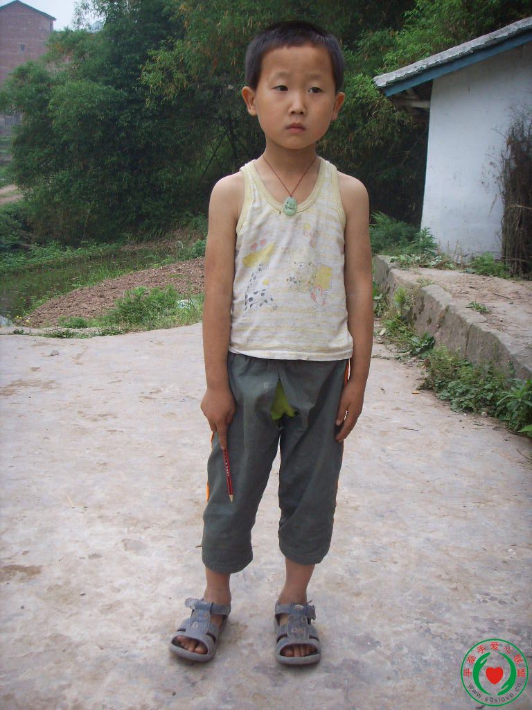很聪明,用书包将裤子烂了的地方挡着