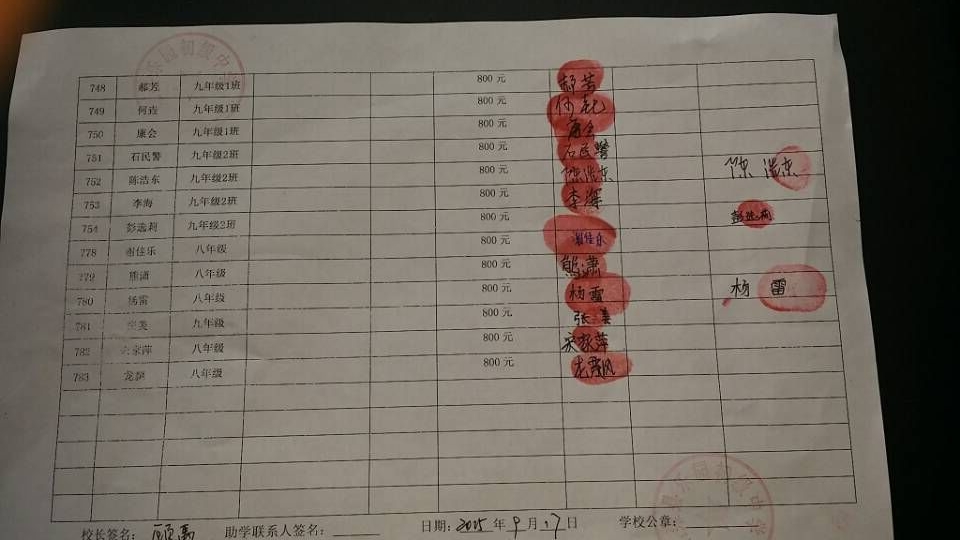 2015年-2016年学年助学款发放汇款情况汇总